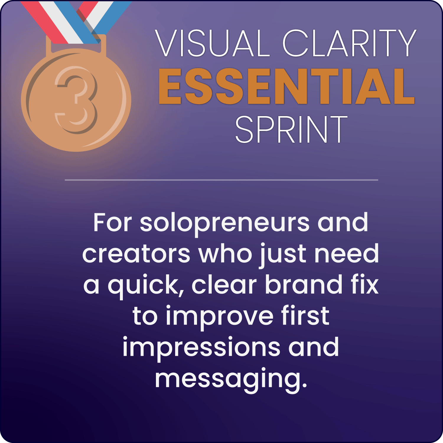 The Essential Clarity Sprint tier offers a quick-turn brand audit that fixes your homepage clarity, refines your messaging, and delivers a conversion-boosting summary report within 48 hours. This tier is built for entrepreneurs, solopreneurs and creators who just need a quick, clear brand fix to improve first impressions and messaging.